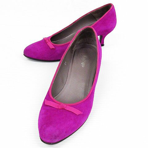 【中古】カスタニエール Castaner パンプス サンダル 靴 アーモンドトゥ ハイヒール リボン装飾 スエード フューシャ ピンク 35 レディース 【ベクトル 古着】 180613 ベクトル店