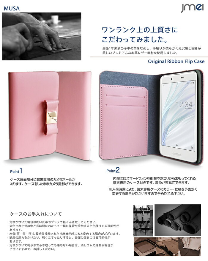AQUOS sense SH-01K/SHV40 ケース 送料無料 本革 JMEIレザーリボンフリップケース MUSA