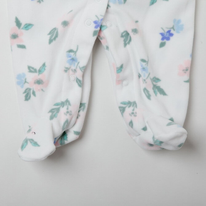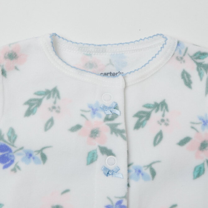 カーターズ【Carter's】(カーターズ カバーオール) フリース 足つきカバーオール☆ホワイト×ライトブルー 花柄【ラッピング不可】