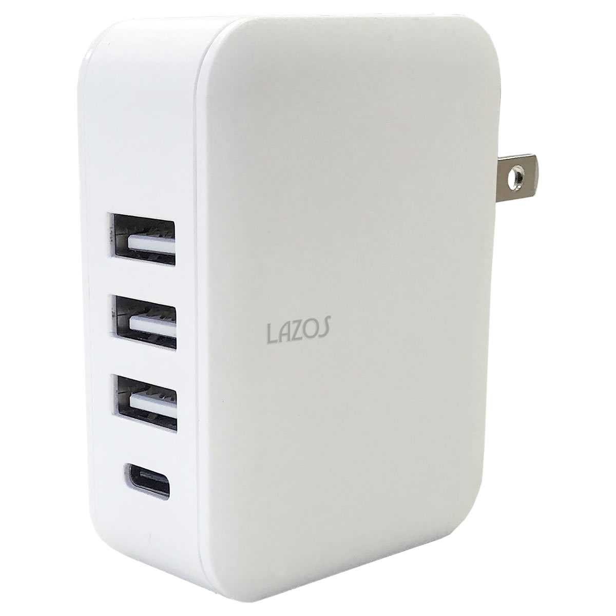 USB充電器 ACアダプター 急速充電 4.8A 4ポート 出力自動判別 Lazos L-AC4.8W 商品詳細 4台を同時に急速充電 USB3ポート各最大出力4.8A、TypeC1ポート最大出力3A 合計最大出力4.8Aの高出力に対応しており、 iphoneやAndroidスマートフォンはもちろん iPadなどのタブレット端末などを接続し4台同時に充電できます。